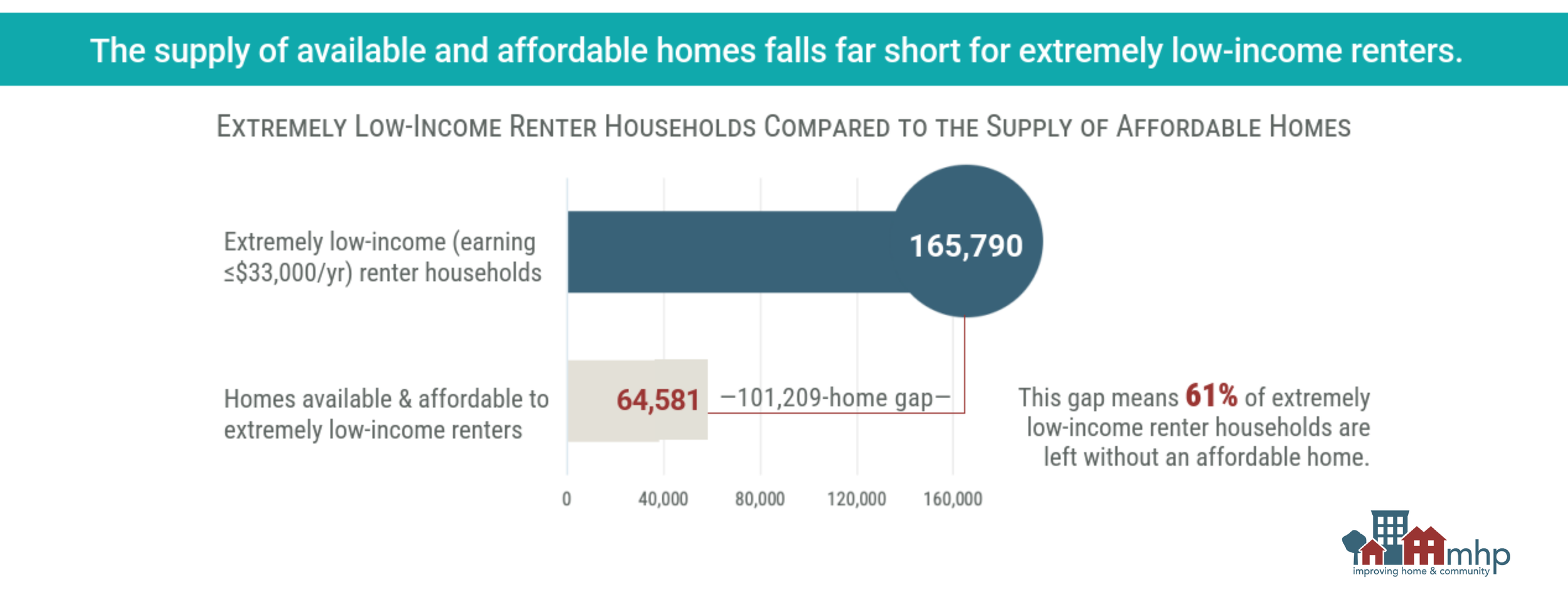 MHP’s housing profile identified several other concerning findings, including that home values in the state are rising faster than income and that there is a large gap in the number of homes affordable to low-income Minnesotans. The profile states there is a shortage of 100,000 affordable homes for low-income renters in the state. This gap forces many renters in the state to pay more for rent than they can realistically afford, leaving them cost-burdened.